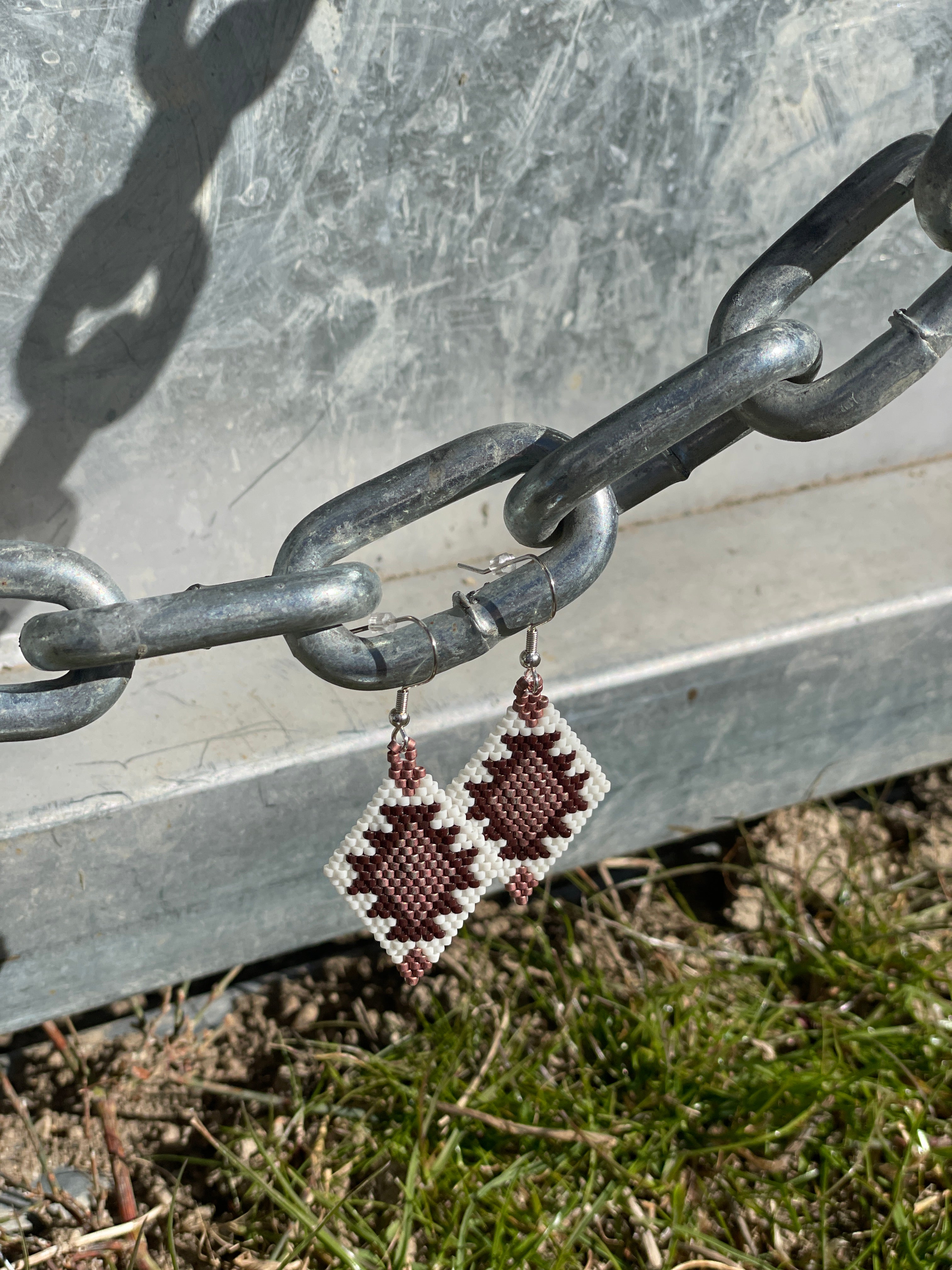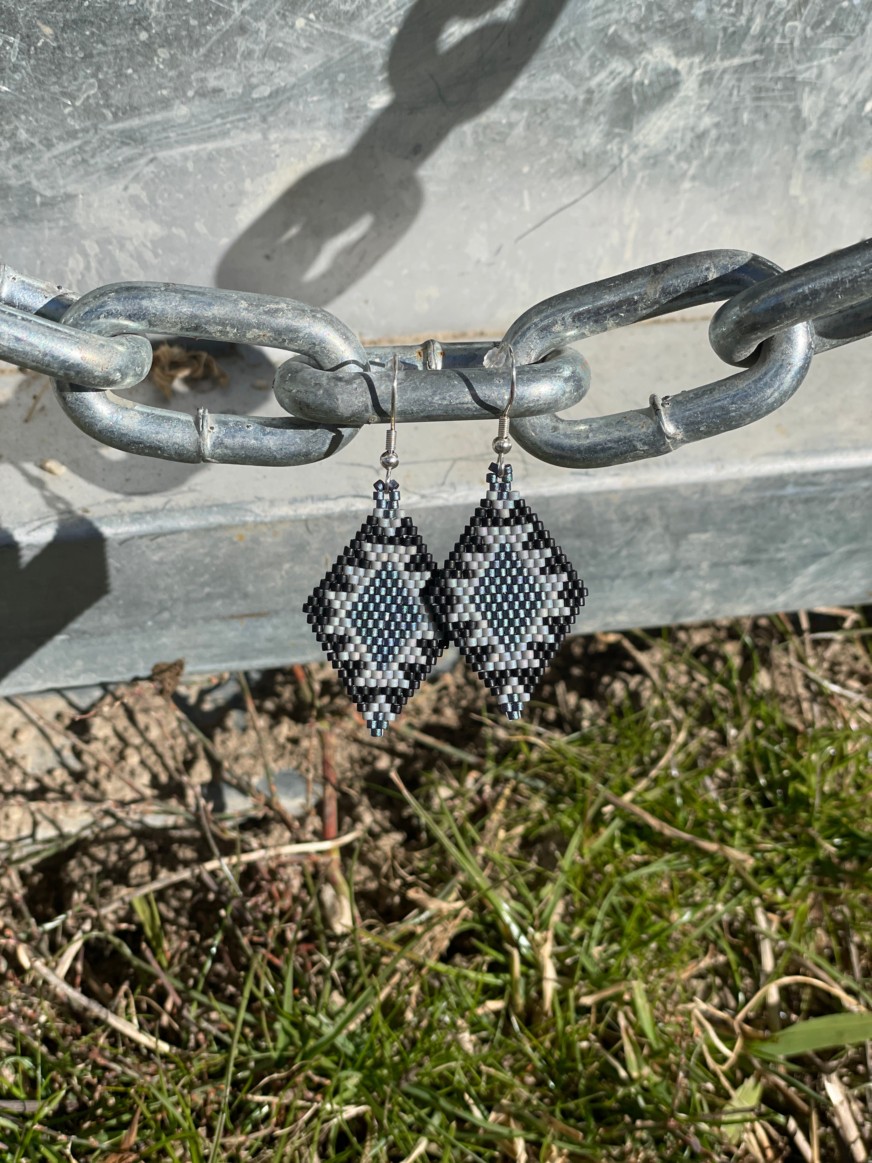 These earrings are light weight and flat in design. They're handcrafted and firm in structure. With a simple ear hook design post they're easy to wear. simple pattern and contrasting colours they're just beautifully design and made. Two colours available, colours may not be able to be repeated so be quick and grab them whilst they're available!