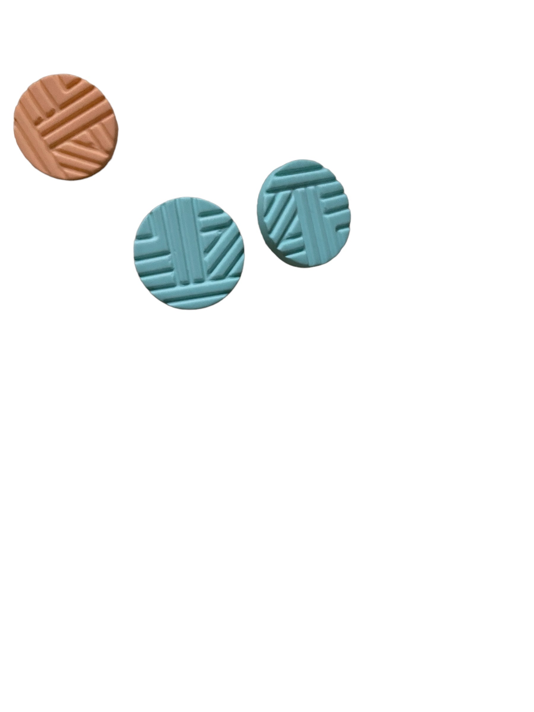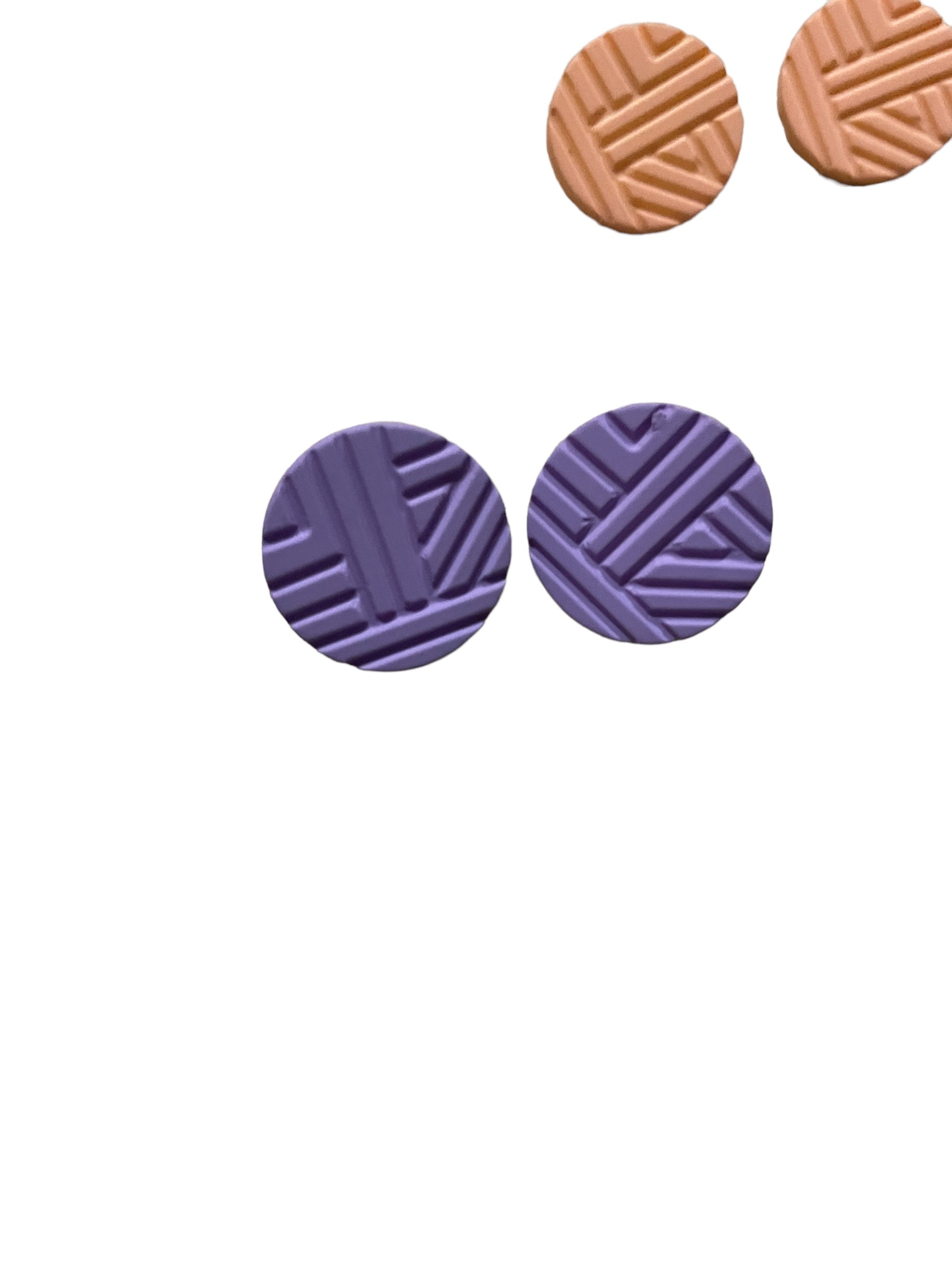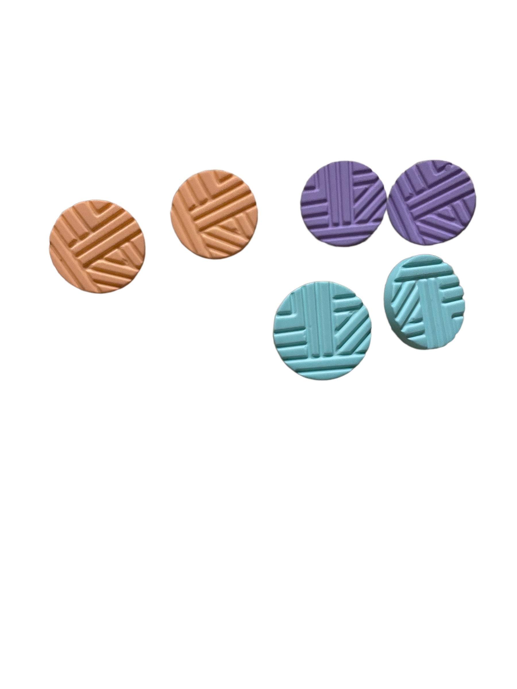Third set is a fun set, they're solid colour and have a line pattern across the face of the stud. Three solid colours in this set, pastel peach, sky blue and purple.