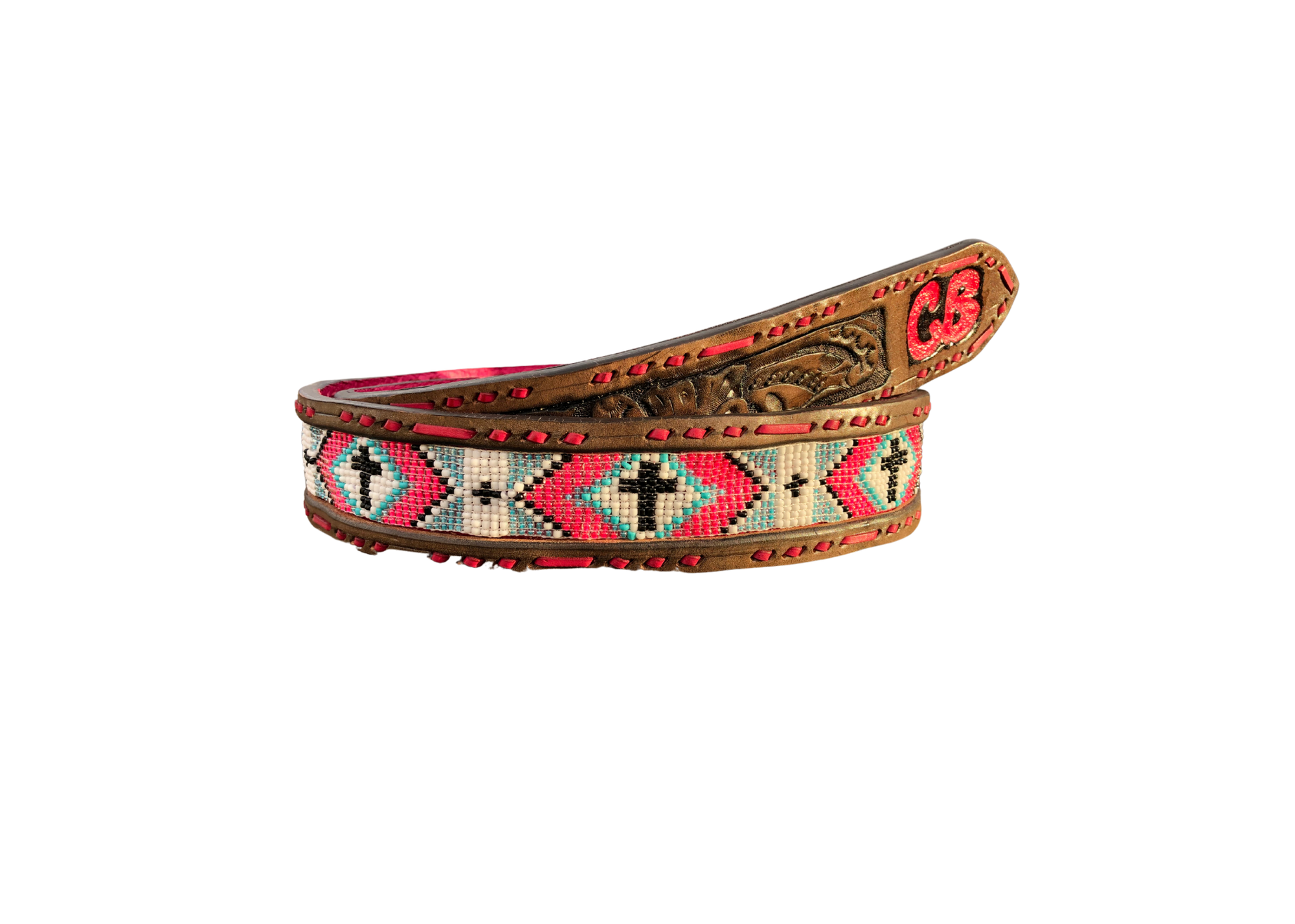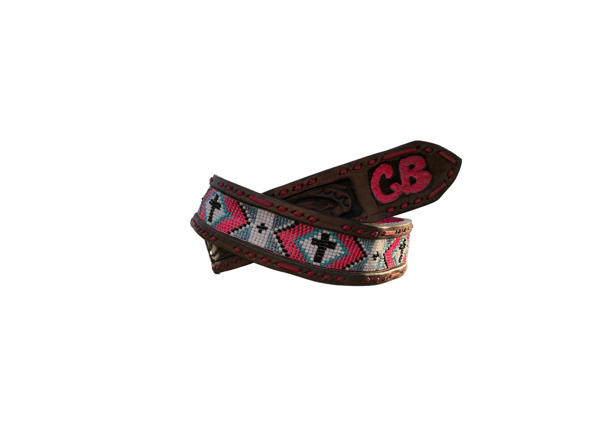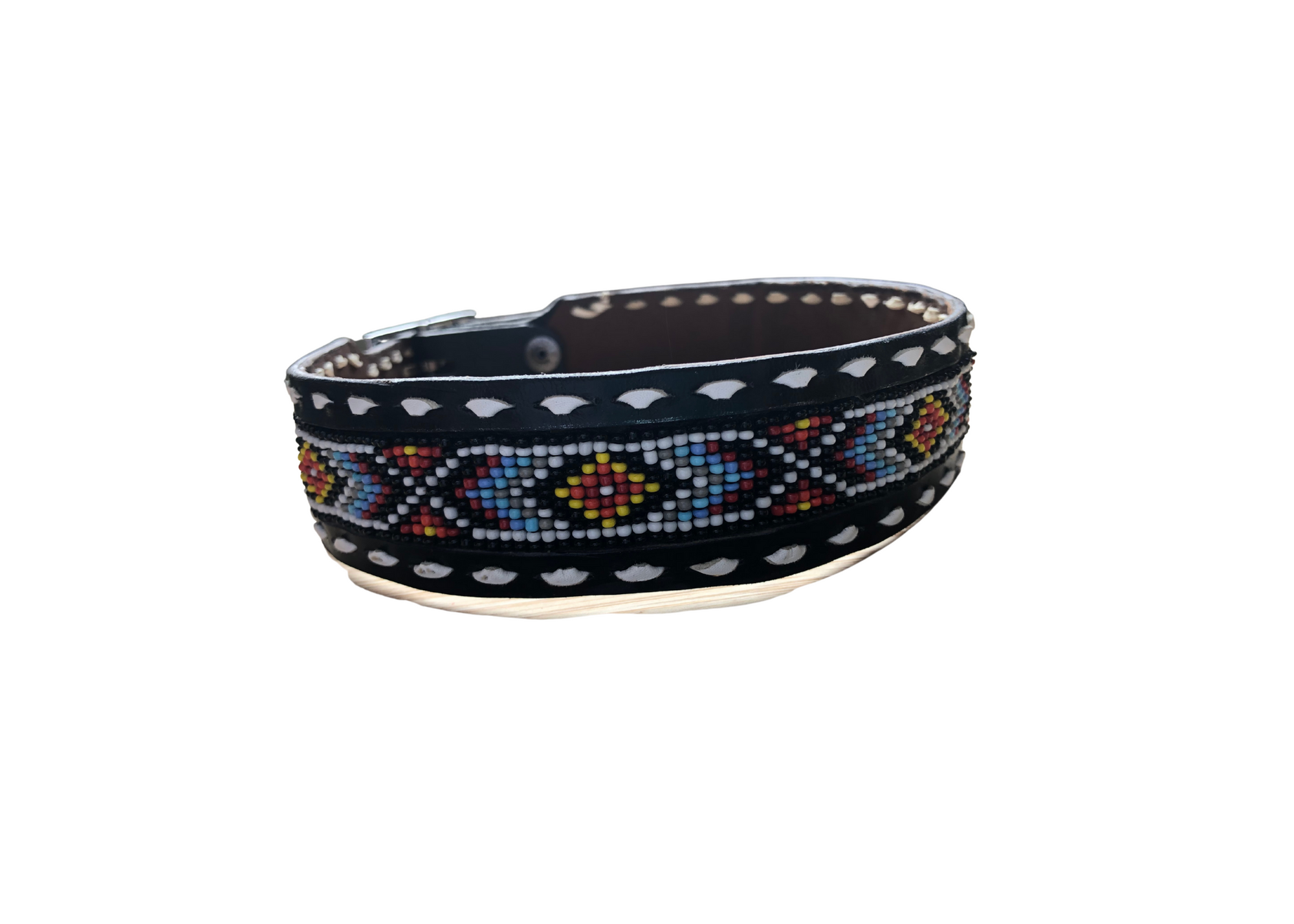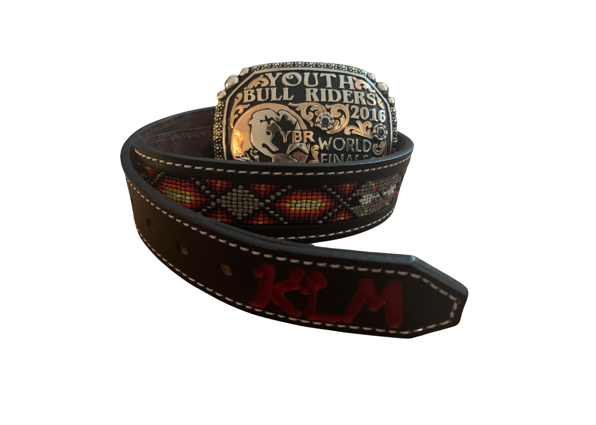 • They bead the decorative beaded strip and custom make the leather belt to fit.