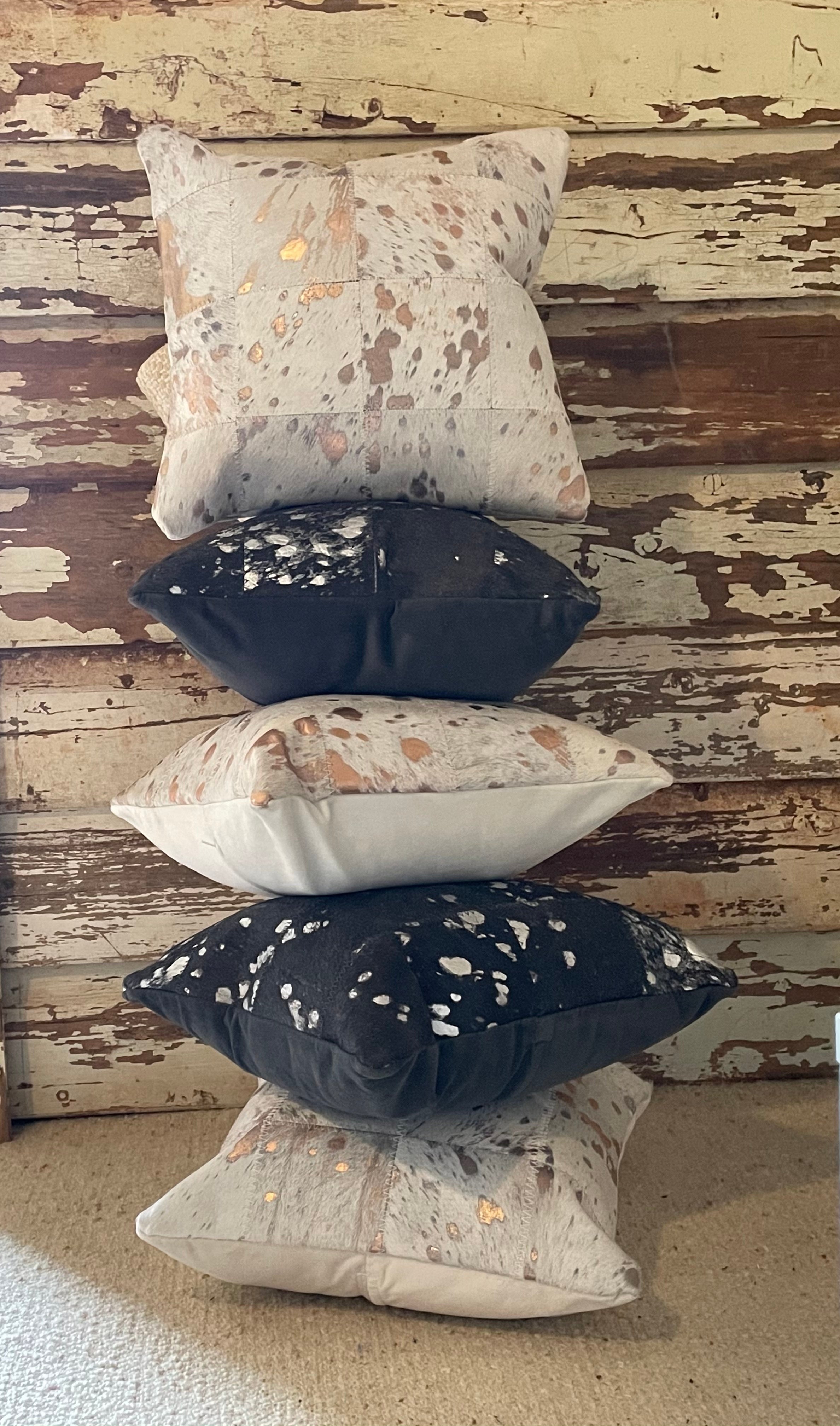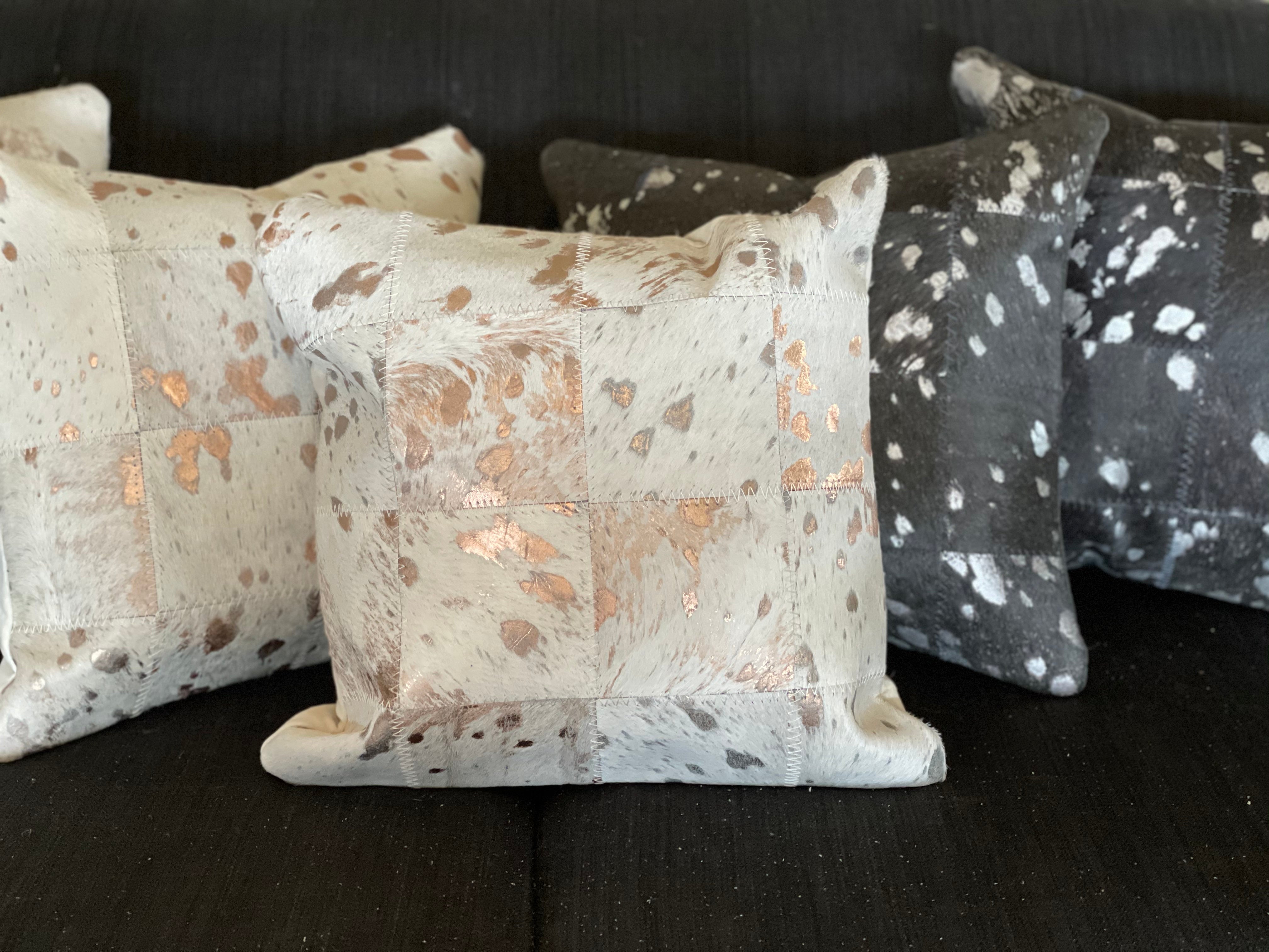 • Hair on hide leather cushion with metallic spot