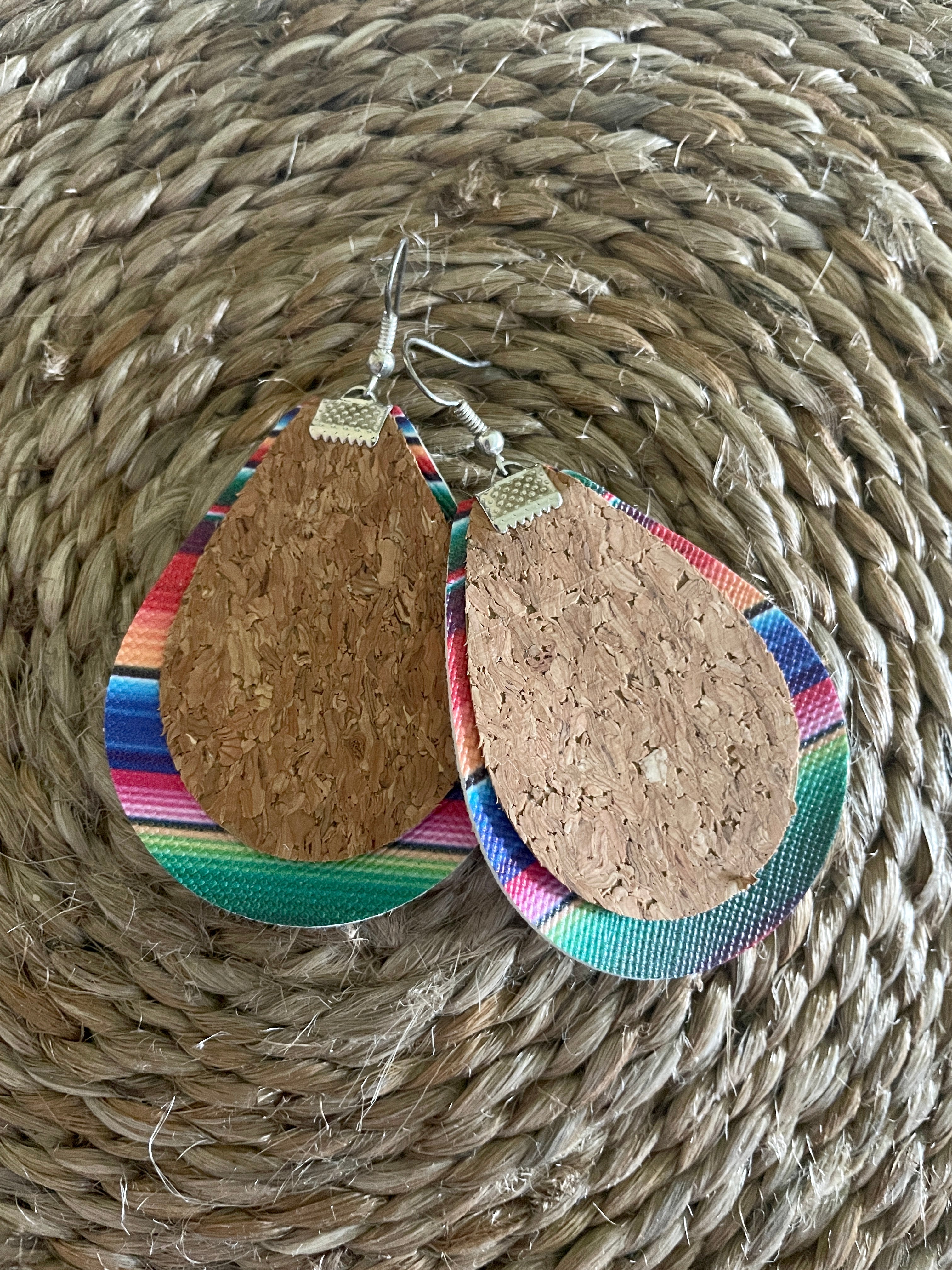 How fun is colour! with the backing piece a fun mexican inspired pattern and the cork look leatherette to tone these earrings down make them so much fun and desirable for more outfits! Surgical steal earring hook used so ideal for those with sensitive ears.