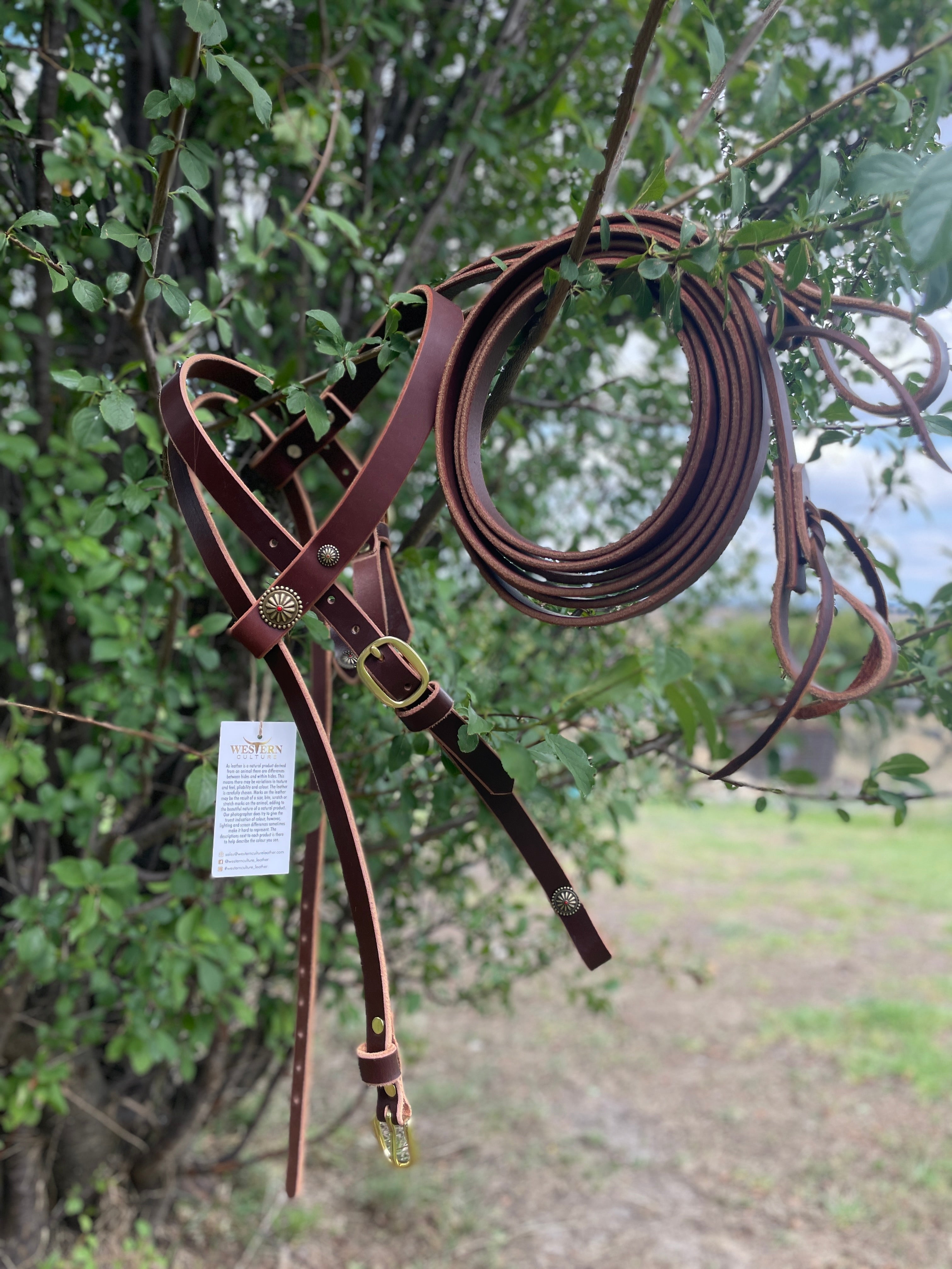 we have started our path on the bridles and reins. We have split reins, short and long reins available. We currently make our bridles to order and styles to suit the individual.