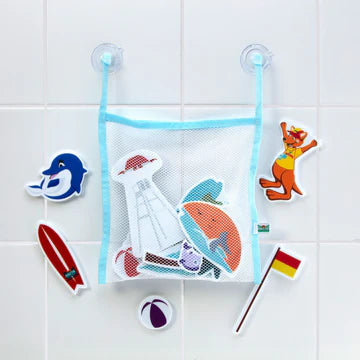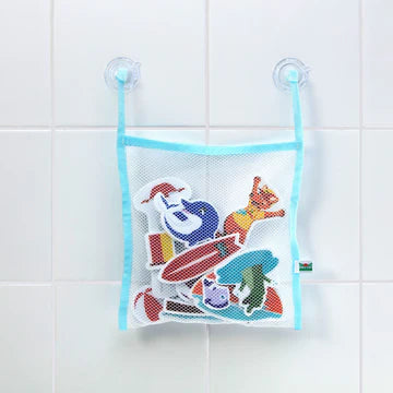 At the end of bath playtime, simply stow away all pieces into the net bag that will stick to your tiles or bath wall. No more mess, and let them dry, looking neat and tidy.